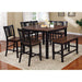 This bench is finished in two-tone: rich cherry seat and black legs. It features an elegant design showcasing contoured wood seats and slatted backs.