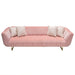 Venus Sofa in Blush Pink Velvet w/ Contrasting Pillows & Gold Finished Metal Base by Diamond Sofa