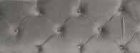 - Button-tufted headboard and footboard with nailhead trim