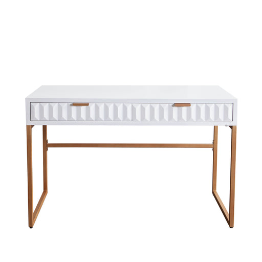 Spectrum 2-Drawer Solid Mango Wood Desk in White Finish w/ Gold Finished Iron Legs by Diamond Sofa