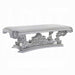 - See the extravagant style and classical design all over the Valkyrie Dining Room Collection. Bold, intricate scrollwork accent is highlighted throughout each piece in this collection. Antique Platinum Finish paired with muted gray tone brings attention to its gorgeous details. Rectangular dining table showcases a timeless pedestal-style silhouette while matching chairs feature button-tufted upholstery for lavish comfort. Bring a dramatic change to your home with the Valkyrie Dining Room Collection.