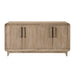 Elevate your home's organization and style with the buffet server. Crafted from a harmonious blend of oak veneer, solid wood, and engineered wood, and finished in a beautiful natural tone, this versatile server offers both aesthetic appeal and practical storage. Featuring two spacious storage cabinets, each equipped with adjustable shelves, it provides ample space to neatly tuck away dinnerware, linens, or media essentials. Its timeless design seamlessly integrates into various decor schemes, making it an ideal addition to your dining room, living room, or entryway for a touch of refined organization.