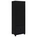 Immerse yourself in the sleek sophistication of this media tower bookcase, a beacon of organization and style. With three tiers of shelving, it presents a stage for your cherished books and collectibles, turning clutter into a curated display. Below, a single-door cabinet offers concealment for items best left unseen, its handle designed for versatility to suit your spatial needs on either side. This piece is not just a bookcase; it's a statement of functionality, wrapped in a silhouette that speaks of minimalist elegance and a commanding presence.