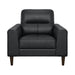 Modern comfort is paired with retro lines to create the design of the Lewes Collection. Covering the chair is black 100% top grain leather where the body touches, while all other areas feature faux leather. Track arms and contoured seating lend to the versatile modern look. Supporting the chair are solid wood legs with a brown finish. 36.5 x 34.5 x 34H