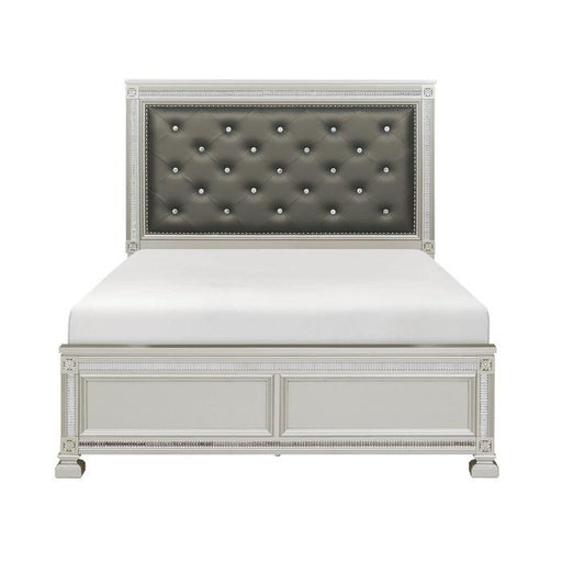 Bevelle Queen Upholstered Panel Bed in Silver 1958-1