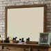 A trending design, industrial style is the latest in fabulous decorating ideas! This mirror features beautiful wood panels in dark oak finish.