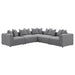 Expand your seating with this modular armless chair, designed to blend seamlessly into a sectional sofa or stand alone as an accent piece. Upholstered in soft grey woven fabric, it offers a versatile neutral palette that suits any living room or entertainment area. The low-profile silhouette features a tight seat with welt trim detailing, paired with plush down-like cushions for exceptional comfort. Supported by discreet black legs with non-skid grip protectors, it ensures both style and stability. Key Features: • Armless chair in grey fabric with modular design for customizable sectional seating • Low-profile silhouette with welt trim enhances the modern streamlined appearance • Tight seat with plush down-like cushions provides lasting comfort and support • Grey woven upholstery offers a soft touch with subtle textured appeal • Discreet black legs include non-skid grip protectors for stable floor placement • Crafted with fabric, foam, larch, plywood, and plastic for durable construction