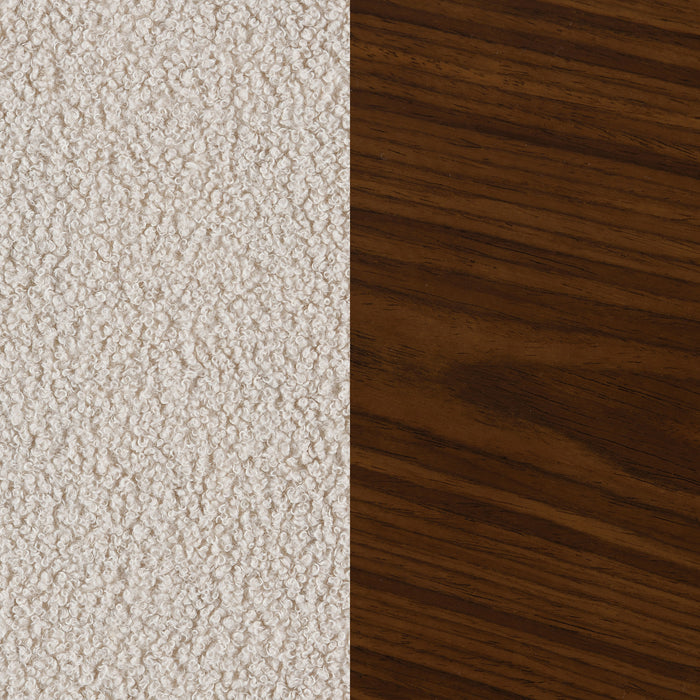 This modern rocking chair blends cozy comfort with sophisticated design, making it an ideal addition to any contemporary home. The plush boucle fabric upholstery wraps the seat and backrest, providing a soft and inviting surface. The walnut-finished bentwood frame adds warmth and elegance, while the curved wooden rockers and sturdy metal legs ensure smooth, stable motion. Whether used in a living room, nursery, or reading nook, this chair's sleek, modern silhouette complements a variety of interiors. Combining high-quality materials and a striking design, this rocker offers both style and comfort for your favorite spaces. Key Features: • Rocking chair with plush beige boucle fabric upholstery • Walnut-finished bentwood frame adds warmth and elegance • Sturdy metal legs and wooden rockers ensure smooth, stable motion • Ideal for living rooms, nurseries, or reading nooks • High-quality materials ensure lasting durability and style