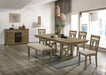 The style of this bench is of course unmistakably farmhouse. The lighter shade of brown coupled with the beige cushions gives it a hint of delicateness that serves only to enhance its overall appeal.